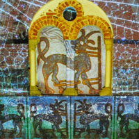 Interprétation et animation des motifs de carreaux dessinés par les moines Cisterciens au Moyen-Age. Changement des projections vidéo ouverte au public grâce à une interface de VJing sur Ipad.